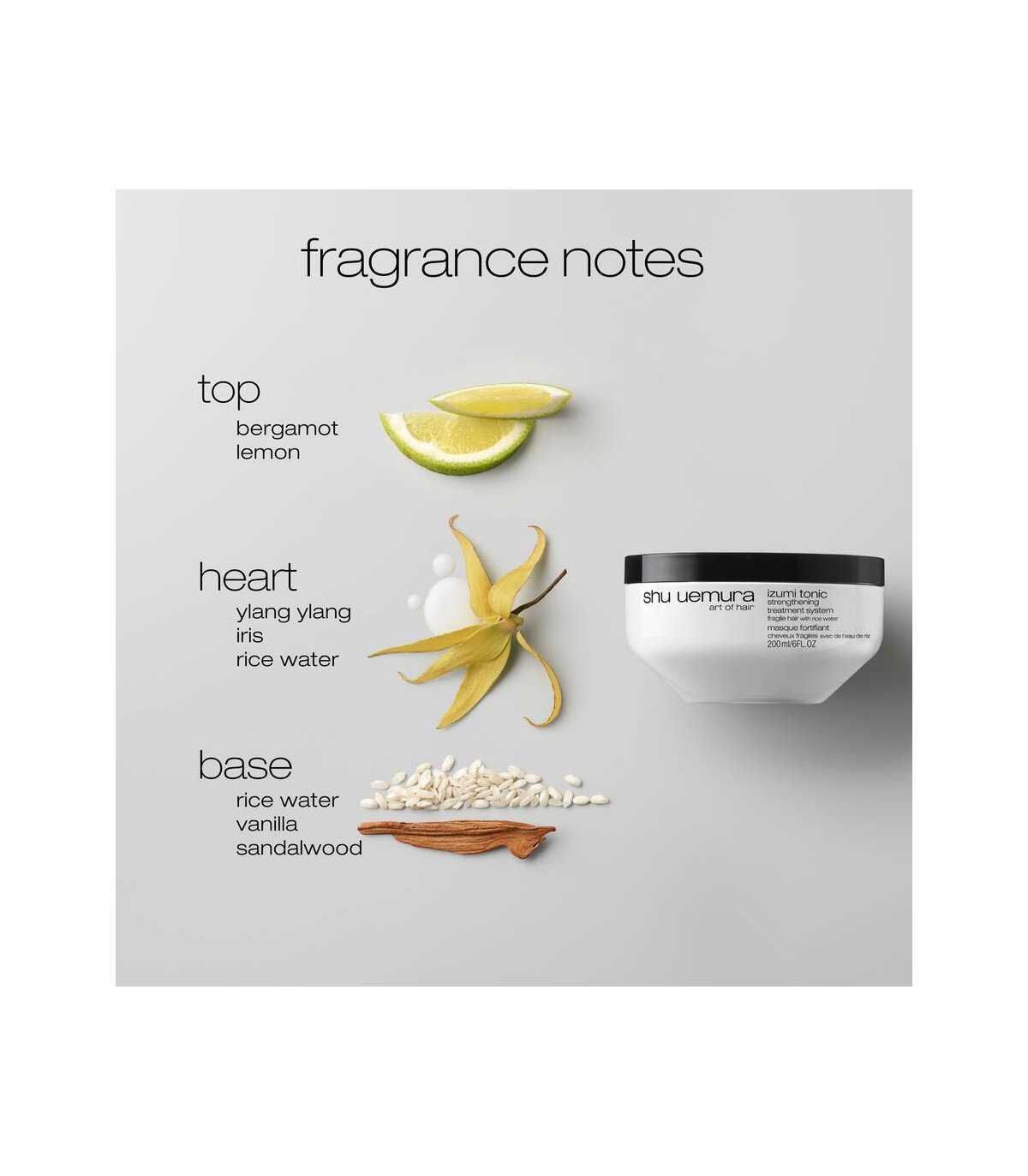 Izumi Tonic Strengthening Mask — интенсивная укрепляющая маска для хрупких и ослабленных волос, вдохновлённая японским ритуалом yu-su-ru — традицией ухода с рисовой водой. Средство создано для глубокого восстановления длины, повышения прочности волос и заметного улучшения их текстуры без утяжеления.