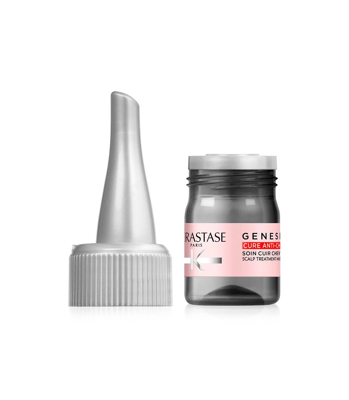 Kérastase Genesis Cure Anti-Chute — интенсивный курс-уход против выпадения волос. Формула с Aminexil, Madecassoside, экстрактом моринги и карнозином укрепляет корни, улучшает состояние кожи головы и делает волосы плотнее, сильнее и устойчивее к выпадению. Не требует смывания. Уход доступен в форматах поддерживающего курса (коробка ампул 10шт) и интенсивного курса (коробка ампул 42шт).